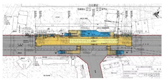白石塘站為標(biāo)準(zhǔn)站,跨坪西路與益民路口布置,出入口分別布置于規(guī)劃路口的四個(gè)象限。車站為地下二層車站,全長約234.4m,標(biāo)準(zhǔn)段寬20.7m,采用120m長x12m寬站臺(tái)。