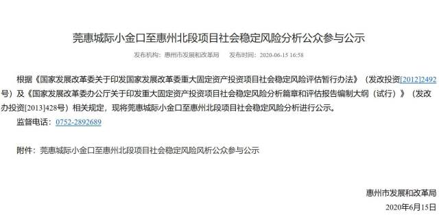 公示顯示,莞惠城際小金口至惠州北段是珠三角城際軌道交通網(wǎng)的莞惠城際線的延長(zhǎng)線。