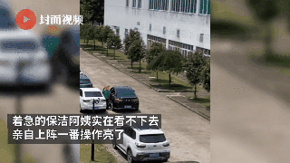浙江一女子側(cè)方停車咋停都停不進(jìn),就招呼保潔阿姨幫忙指揮,結(jié)果還是沒成功。