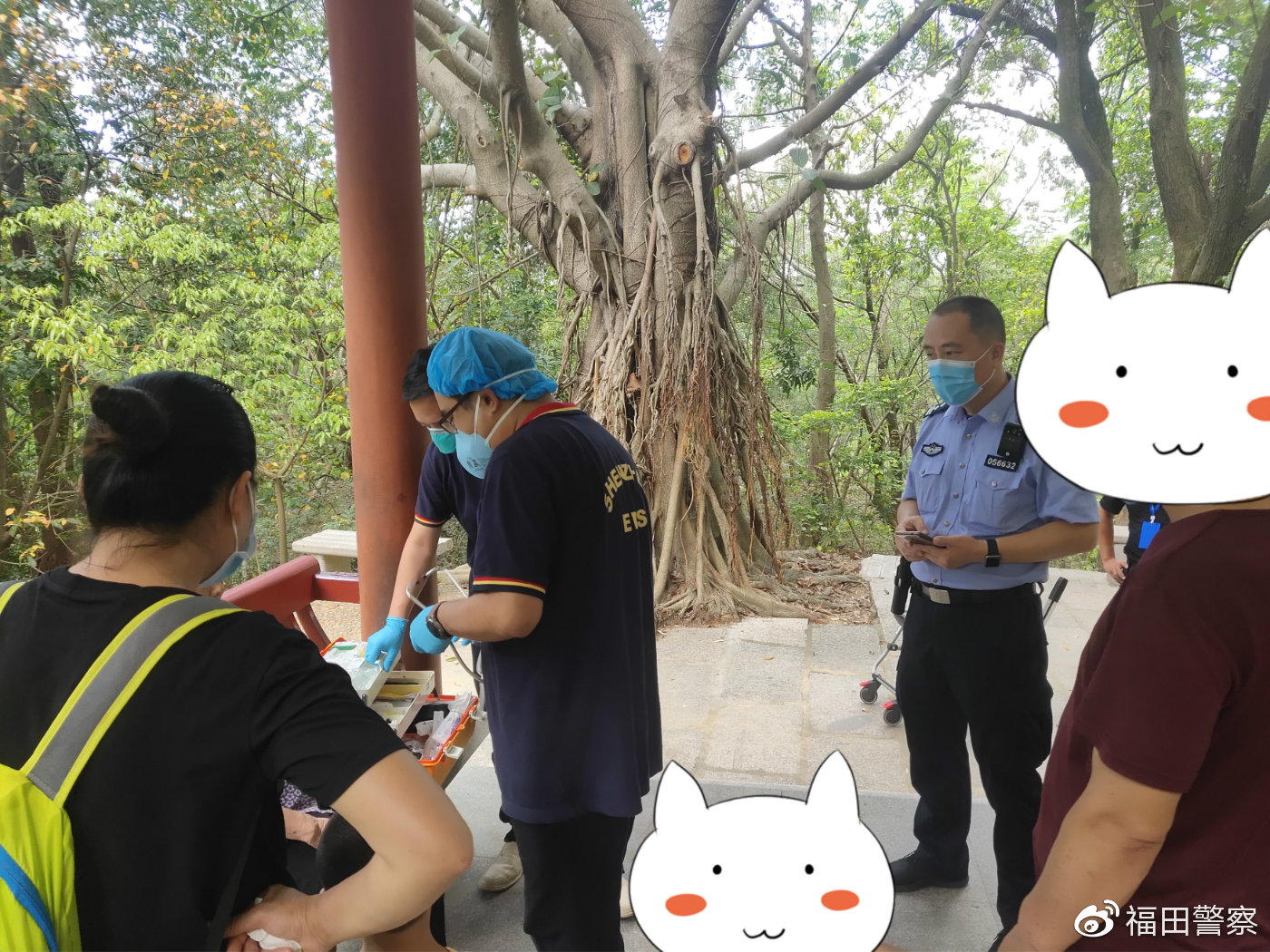 13時(shí)許,接派出所前臺(tái)指令,報(bào)稱一老人身體不適請求幫助后,民警立即趕到現(xiàn)場,協(xié)助120醫(yī)務(wù)人員進(jìn)行檢查。檢查完畢后,民警為老人遞上一杯水,并在確認(rèn)老人身體無礙后,將其護(hù)送下山。