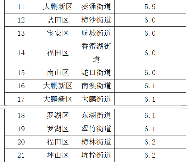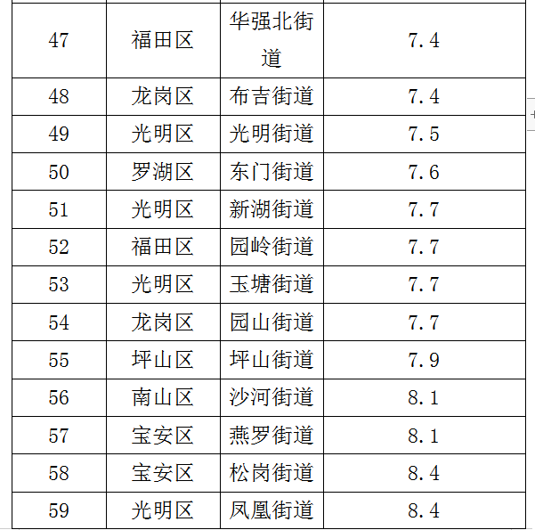 各街道及各區(qū)具體排名見下表。