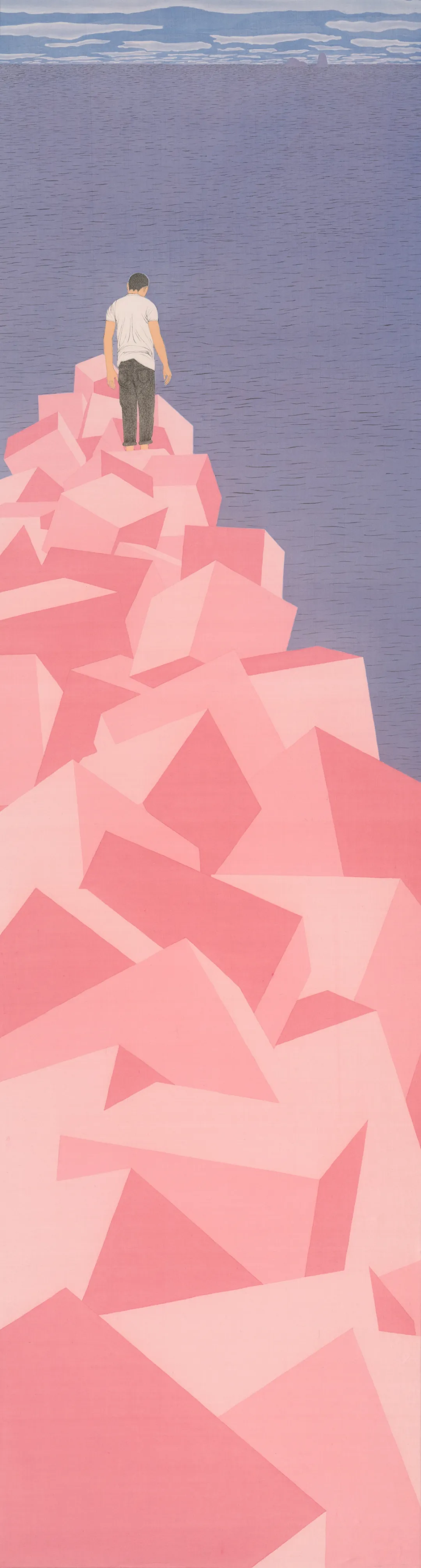 趙儒楠《礁—凝固的海岸》,紙本設(shè)色,150×70cm,2020年