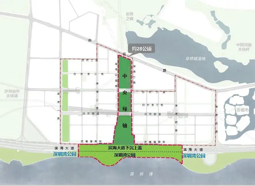 今年6月6日上午,該基地舉行中央綠軸項目開工活動,此次開工的中央綠軸項目南北全長約1.0公里,最大寬度達(dá)210米,是連接塘朗山——華僑城濕地——深圳灣“通山達(dá)海”的核心空間軸線。隨著濱海大道深超總段下沉工程建設(shè),未來深超總紅線內(nèi)景觀將與深圳灣公園無縫銜接,共同構(gòu)成南北貫通的中央綠軸體系。