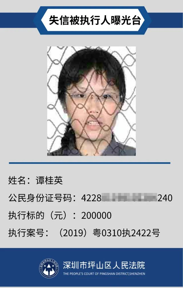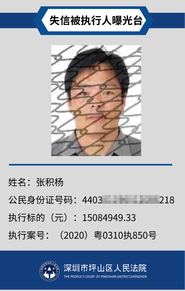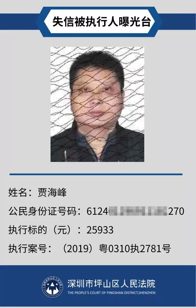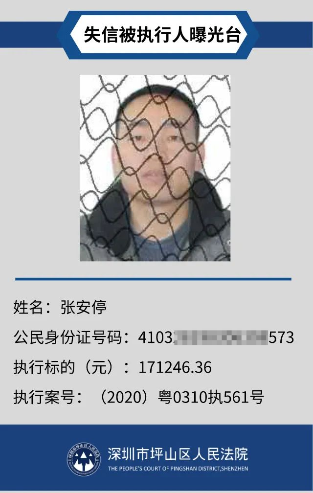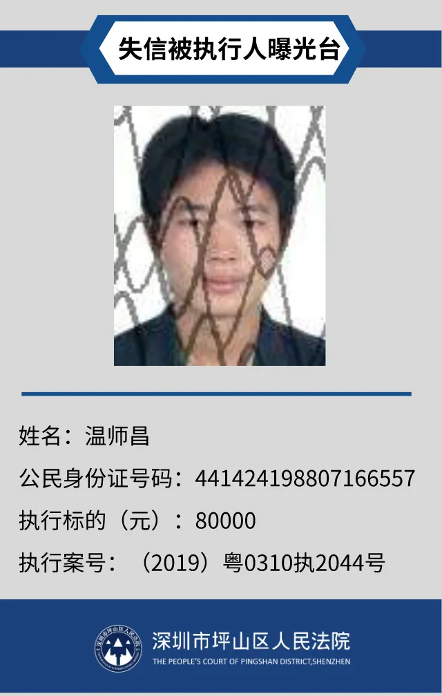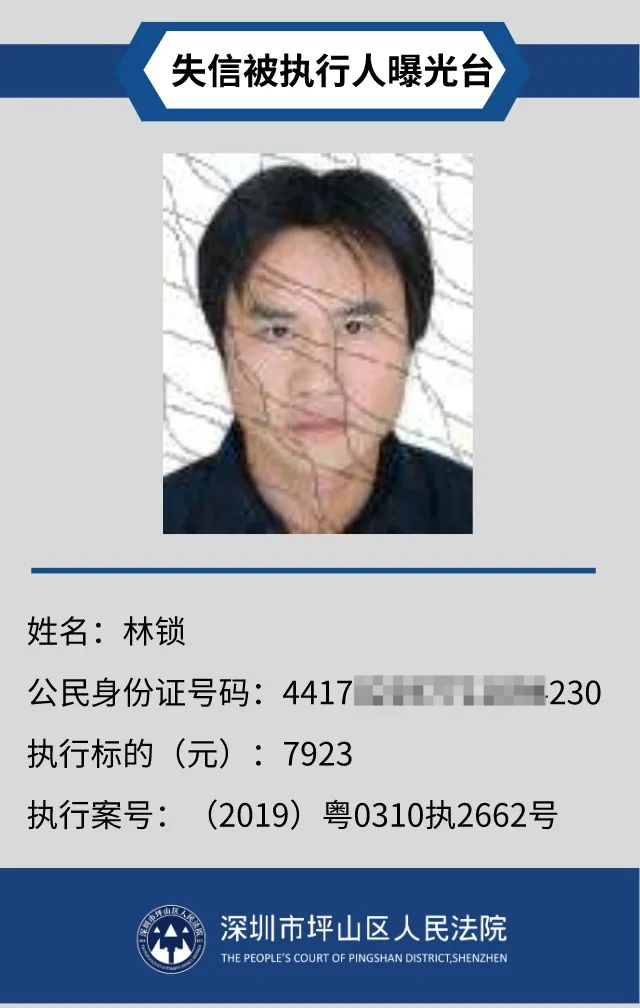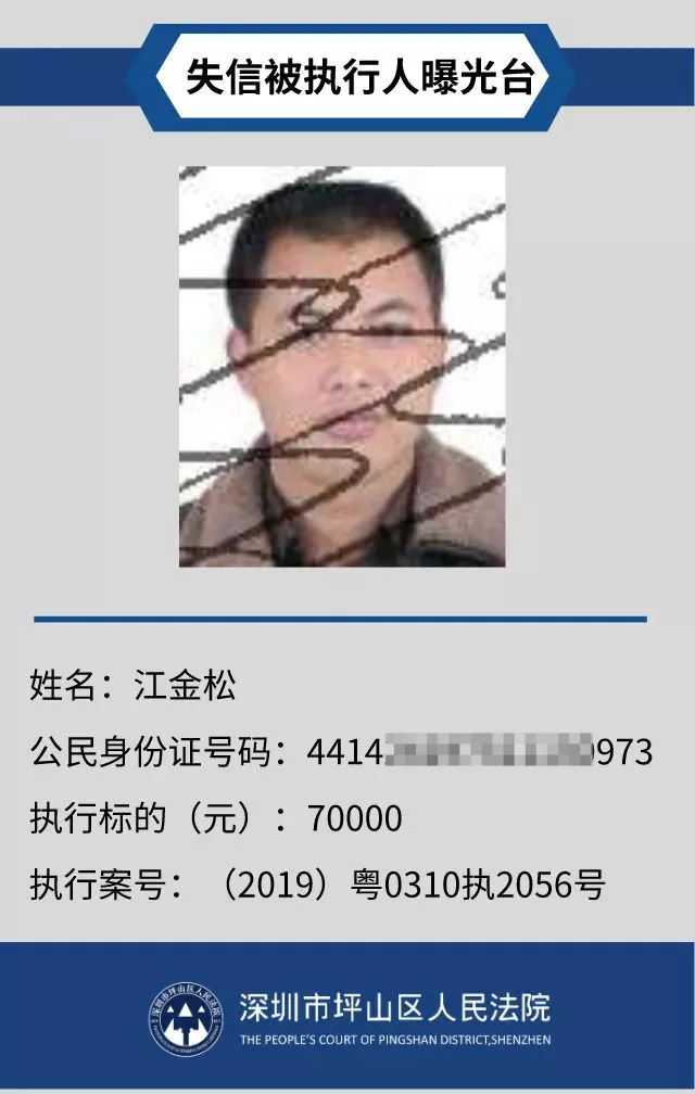 為督促被執(zhí)行人自覺履行生效法律文書確定的義務(wù),推進社會誠信體系建設(shè),深圳市坪山區(qū)人民法院根據(jù)《中華人民共和國民事訴訟法》第二百五十五條、《最高人民法院公布失信被執(zhí)行人名單信息若干規(guī)定》第一條和第七條之規(guī)定,現(xiàn)對31名失信被執(zhí)行人予以公布。名單信息根據(jù)案件結(jié)案情況及時更新,歡迎舉報失信被執(zhí)行人行蹤及財產(chǎn)線索,相關(guān)信息核實請聯(lián)系深圳市坪山區(qū)人民法院執(zhí)行局。
