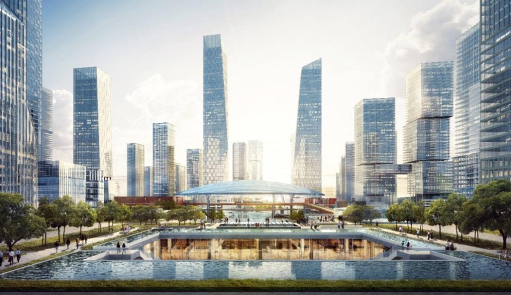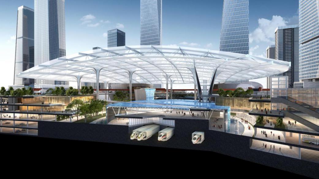 設(shè)計(jì)將新樞紐廣場(chǎng)融合城市公園、復(fù)合業(yè)態(tài)、多維換乘、自然意象、創(chuàng)意環(huán)境等多種場(chǎng)所,塑造多維體驗(yàn)的城市超核和多維人群活動(dòng)的北站都心。城市超核以豐富的空間層次融合室內(nèi)外觸媒,消除城市與樞紐界限,創(chuàng)造與城市功能相融合的等候空間,實(shí)現(xiàn)產(chǎn)業(yè)活力與自然活力共生,將車(chē)站、城市與自然和諧統(tǒng)一。