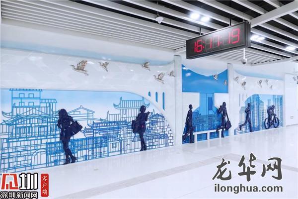 2015年,曾經(jīng)的深圳經(jīng)濟(jì)特區(qū)“梅林關(guān)檢查站”正式退出歷史舞臺(tái),由梅林關(guān)等組成的深圳特區(qū)管理線,是特區(qū)建設(shè)的歷史見(jiàn)證,承載著城市的記憶。一進(jìn)站廳層,雕塑作品《梅林關(guān)記憶》便讓人留下深刻印象,該作品的畫面主背景為已拆除的“梅林關(guān)聯(lián)檢大樓”,透過(guò)兩側(cè)的半拱造型、線性結(jié)構(gòu)建筑使得深圳的厚重歷史與飛速發(fā)展清晰可見(jiàn)。