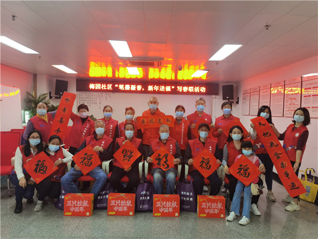 活動(dòng)現(xiàn)場,老黨員們寫下了一幅幅翰墨飄香、祝福滿滿的春聯(lián),既有辭舊迎新的美好愿景,又有大展宏圖的勵(lì)志高歌;一副副喜慶的春聯(lián)、一個(gè)個(gè)紅彤彤的“?!弊周S然眼前,映襯著一張張幸福的笑臉。清水河街道四級(jí)調(diào)研員、社區(qū)第一書記黃大滿與社區(qū)黨委成員、社工一起參與到該活動(dòng)中,共同為轄區(qū)居民送上新春祝福?;顒?dòng)結(jié)束后,社工與支部黨員代表、社區(qū)義工一起上門給居民派發(fā)春聯(lián),傳遞社區(qū)黨委給群眾致以最誠摯的祝福和關(guān)懷。“這字寫得真漂亮??!這樣的春聯(lián)比在外頭買的有意義有年味多了!”收到春聯(lián)的居民不禁感嘆到!