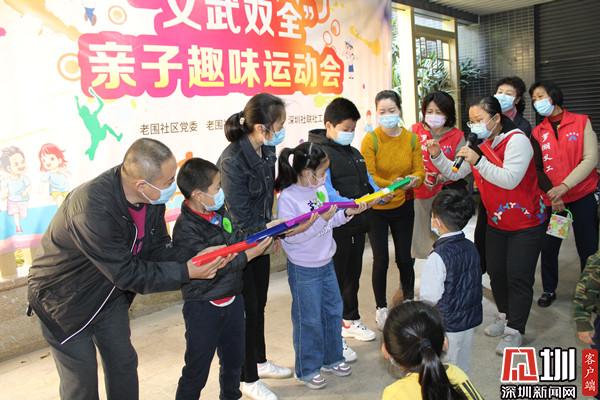 見圳客戶端·深圳新聞網(wǎng)2月1日訊(記者 劉嘉敏 通訊員 楊紀(jì)歐)今年過年不回家,要玩就在社區(qū)玩?!耙蛉攵础薄靶◎蝌秸覌寢尅薄傲璨ㄎ⒉健薄皩殞氈嘎贰边@些又好聽又好玩的游戲,是羅湖區(qū)桂園街道老圍社區(qū)黨群服務(wù)中心的社工為社區(qū)居民精心準(zhǔn)備的。1月30日上午,社區(qū)為鼓勵社區(qū)居民留深過年,專門開展了一場“文武雙全”親子趣味運(yùn)動會,吸引了眾多小朋友及其家長,12對親子來到現(xiàn)場。