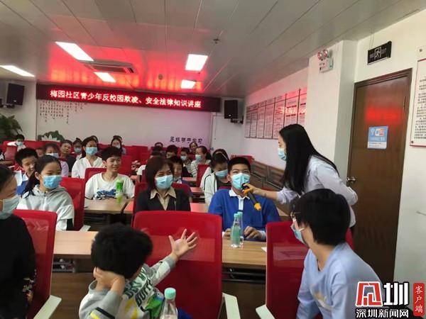 梅園社區(qū)黨委副書記陳秋珊還和學(xué)生們進(jìn)行提問互動(dòng),不僅加深了孩子們對知識(shí)講座內(nèi)容的認(rèn)識(shí),還教會(huì)了孩子們不管是在校園還是社會(huì)上,遇到了困難應(yīng)如何采取正確的方式方法去解決問題。