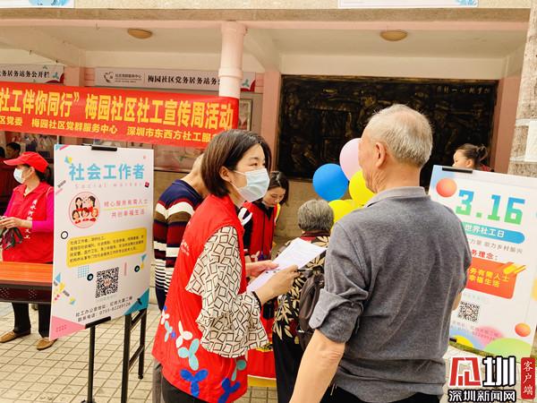 見圳客戶端· 深圳新聞網3月16日訊(記者 郭含笑 實習生 覃鈺清 通訊員 李珍鳳 張亮亮)為進一步提高社會工作的影響力,樹立社會工作專業(yè)形象,3月16日下午,深圳市清水河街道梅園社區(qū)黨委、深圳市東西方社工服務社駐梅園社區(qū)黨群服務中心的社工開展了“幸福梅園 社工伴你同行”社工宣傳周活動。