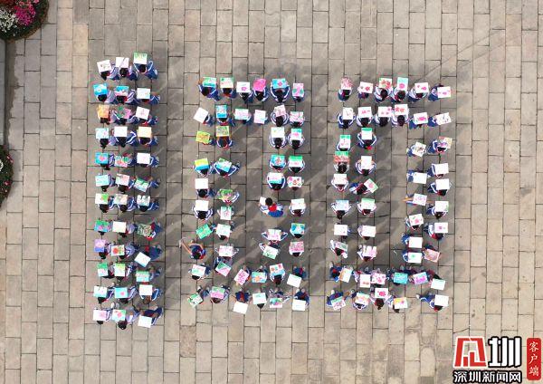繪畫結(jié)束后,同學(xué)們興奮地向鏡頭展示他們的畫作,一幅幅精心繪就的畫作,給杜鵑花海增添了更多充滿創(chuàng)意的色彩。隨后,同學(xué)們?cè)趶V場(chǎng)擺出“100”字樣,向中國共產(chǎn)黨建黨100周年致敬。