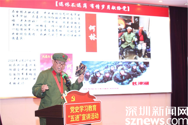 “他是71年前抗美援朝長津湖戰(zhàn)役中‘冰雕連’唯一健在的幸存者周全弟,四肢被凍傷后全部截肢,但他學(xué)會(huì)了生活自理,洗漱、穿衣、吃飯、搖著輪椅四處“散步”,甚至用手機(jī)上網(wǎng)看新聞。我們一起參加了中央電視臺(tái)在嘉興南湖紅船舉辦的《老兵你好》訪談節(jié)目?!?4歲高齡的何林說,他是一名深圳拓荒牛代表、羅湖區(qū)“紅星宣講隊(duì)”成員。