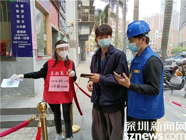 1月9日,羅湖區(qū)開(kāi)始第二輪全員核酸檢測(cè),桂園街道老圍社區(qū)在禧程酒店、人民銀行門口、老圍花園五樓設(shè)立了三個(gè)臨時(shí)檢測(cè)點(diǎn),社區(qū)工作人員和志愿者以及區(qū)里和街道的下沉人員身穿紅馬甲,在社區(qū)黨委的領(lǐng)導(dǎo)下,全力以赴,積極組織和引導(dǎo)市民快速有序地采樣離場(chǎng)。