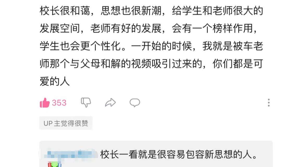 黃潔校長(zhǎng)回答了該UP主提出的很多問題,黃潔表示,自己是一步一步從基層走上來的,她從大學(xué)畢業(yè)就當(dāng)老師了。從當(dāng)班主任開始,再到年級(jí)長(zhǎng)、學(xué)生處主任、教學(xué)處主任……最后當(dāng)上校長(zhǎng)。