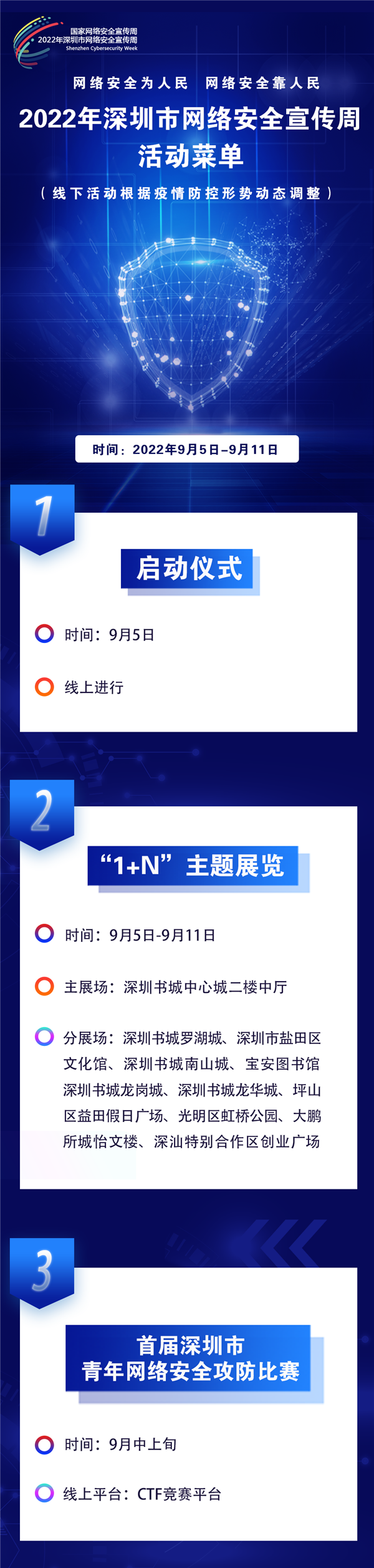 據(jù)介紹,2022年羅湖區(qū)網(wǎng)絡(luò)安全宣傳周將采取線上與線下相結(jié)合、傳統(tǒng)媒體與新媒體齊發(fā)力的方式,圍繞“3+N”的形式開展:“3”包括舉辦一場主題展覽、拍攝一批微電影及策劃一系列新媒體創(chuàng)意作品,“N”包括各單位圍繞網(wǎng)絡(luò)安全宣傳周開展的一系列活動(dòng)。