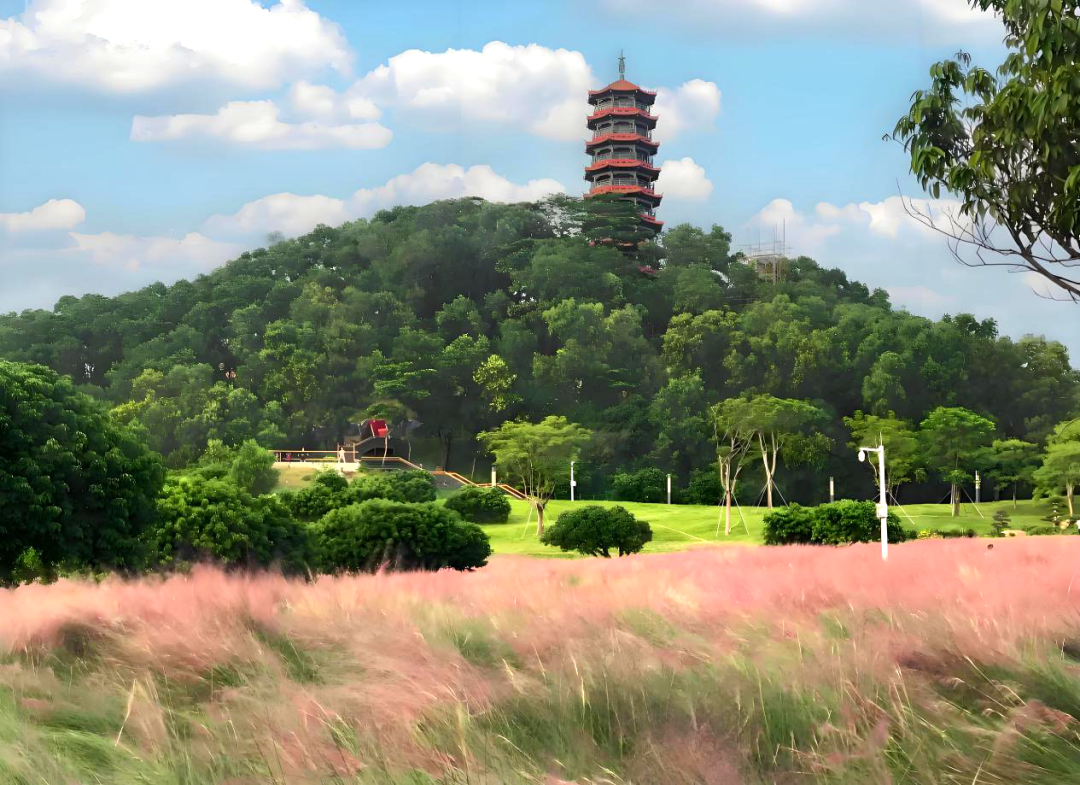 紅花山公園不僅是這個(gè)超級(jí)商圈的生態(tài)底色,更是吸引人流的磁極。占地25萬(wàn)平方米的公園內(nèi),明和塔巍然矗立。每年秋季,近萬(wàn)平的粉黛亂子草綻放,形成浪漫的粉色花海,吸引無(wú)數(shù)市民前來(lái)打卡。