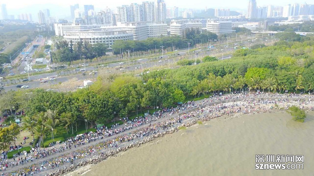 深圳人假日勤動(dòng)腳,深圳灣公園被自行車堵了。