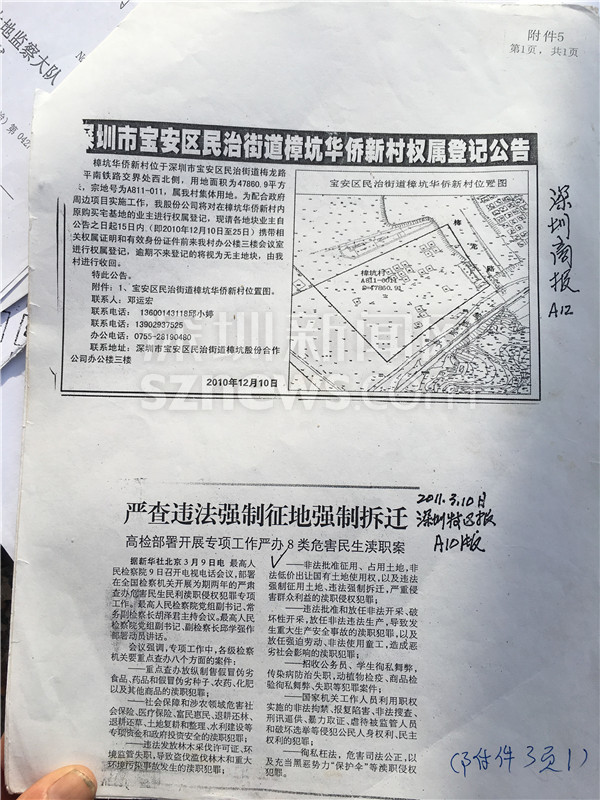 2010年深圳商報刊登的民治街道樟坑華僑新村權(quán)屬登記公告