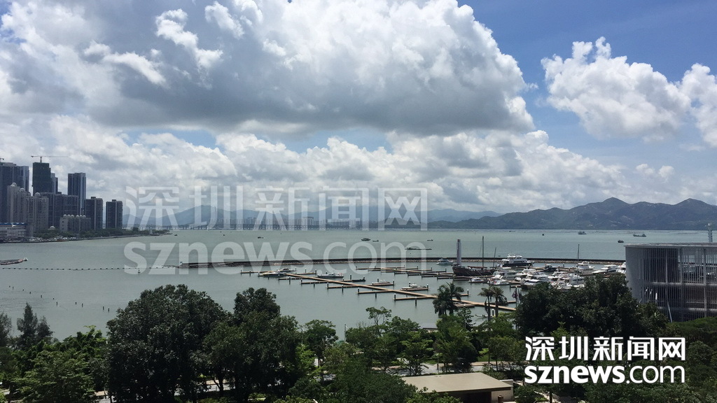 在酒店臨海客房陽臺(tái)可看到深圳灣大橋以及附近的游艇碼頭