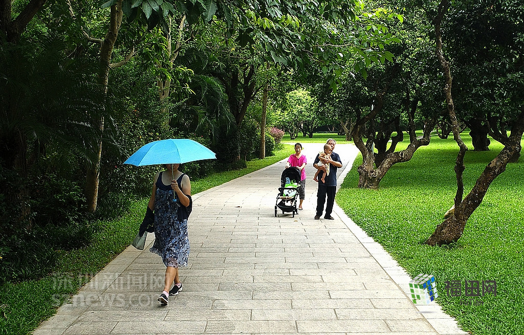 在梅林公園的綠道中,有三三兩兩散步的居民,有帶著小孩學(xué)騎車(chē)的媽媽?zhuān)€有在園內(nèi)剛剛健身完的老人。