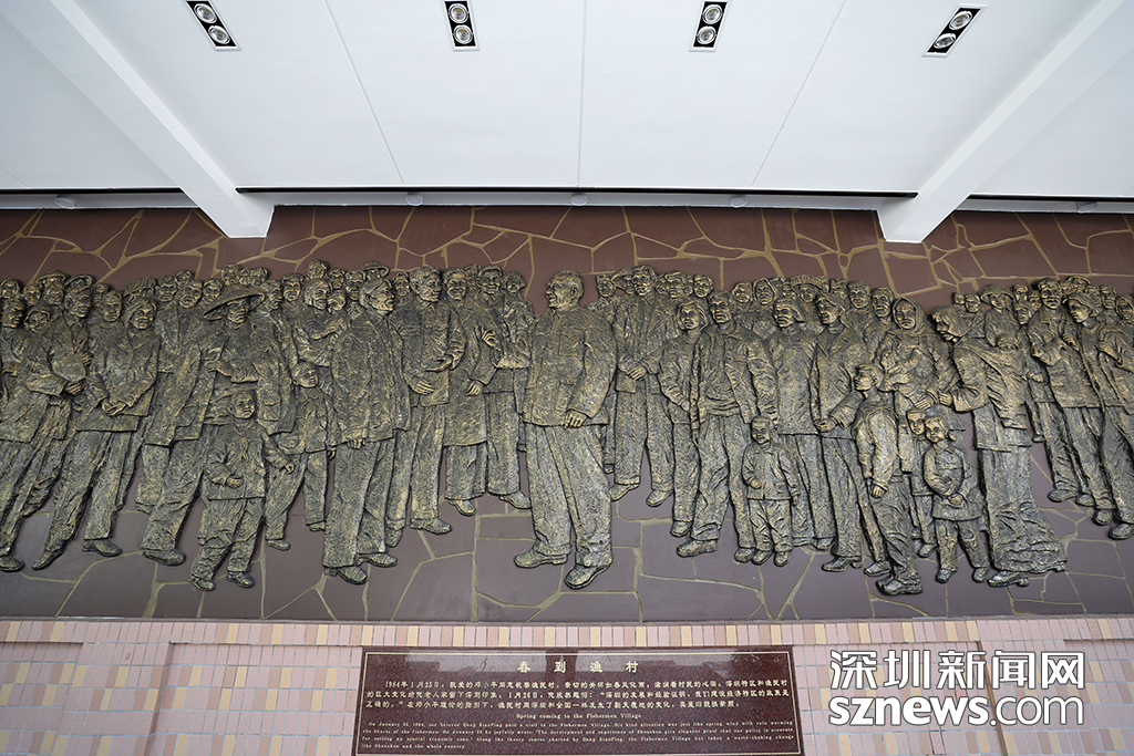 文化長(zhǎng)廊中《春到漁村》的銅鑄浮雕再現(xiàn)了1984年鄧小平來(lái)漁民村考察的場(chǎng)景