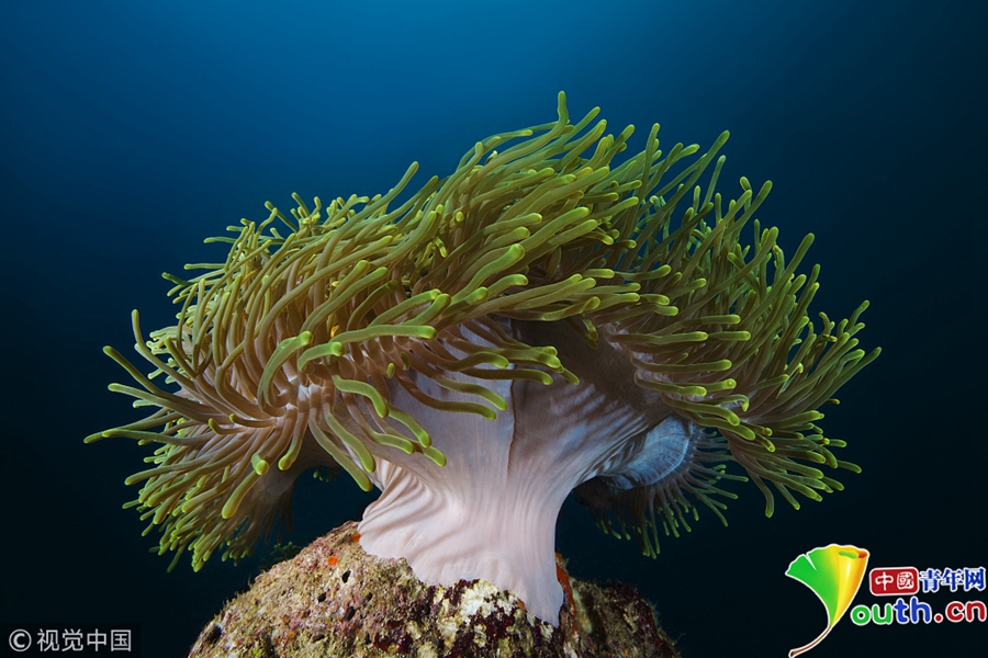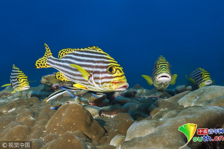 印度洋馬爾代夫水域,條紋叉鼻鲀。 圖片/視覺中國