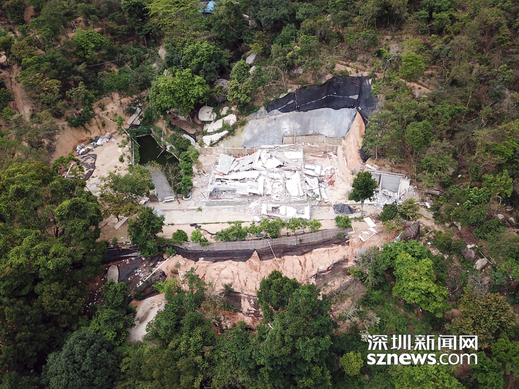 深圳新聞網(wǎng)無人機(jī)從高空拍下羊臺(tái)山兩處被拆除違法建筑