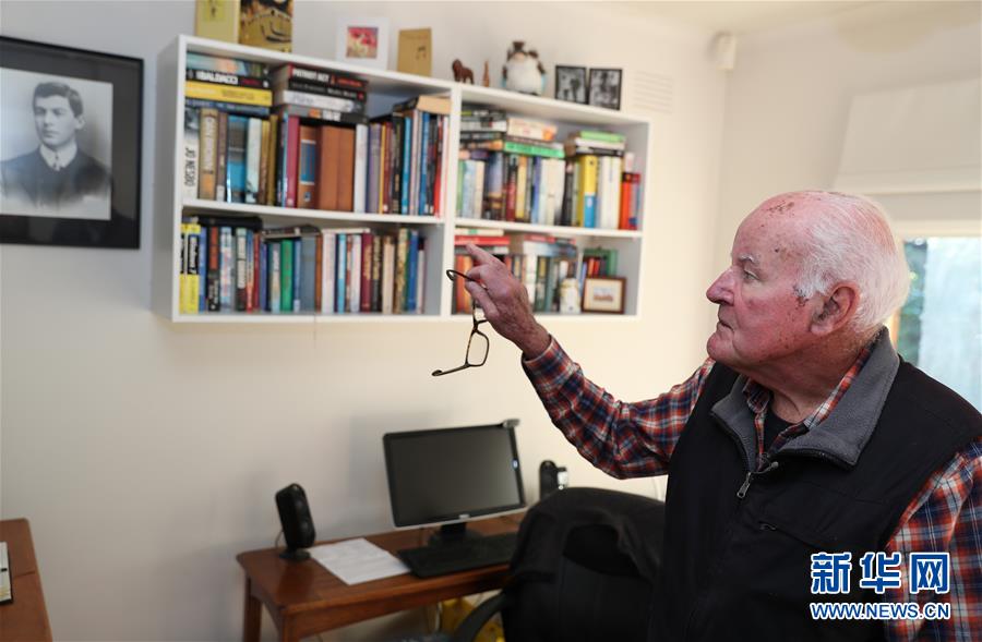 在澳大利亞最古老的唐人街——墨爾本唐人街深處,隱藏著一棟五層紅磚小樓,澳華歷史博物館就坐落在這里。1818年,來自廣東的麥?zhǔn)烙⒃诮芸诉d港下船,成為有記載的最早一批來澳華人移民中的一員。19世紀(jì)50年代,伴隨著淘金熱,不少華工出現(xiàn)在澳大利亞的金礦里。現(xiàn)在,澳大利亞的華裔人口已超過100萬,中文僅次于英文成為澳大利亞使用人數(shù)第二多的語言。圖為巴里·世英在家中回憶自己的父親馬丁·世英(2018年6月22日攝)。居住在墨爾本郊外20多公里的布萊克羅克小鎮(zhèn)上的八旬老人巴里·世英就是麥?zhǔn)烙⒌暮笕?。新華社記者白雪飛攝