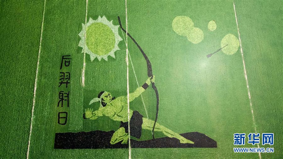 這是7月29日在安徽壽縣安豐塘水庫北堤拍攝的“稻田畫”(無人機拍攝)。 新華社記者 張端 攝