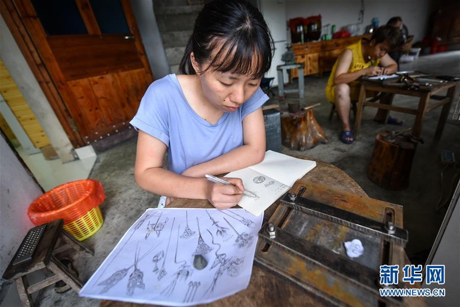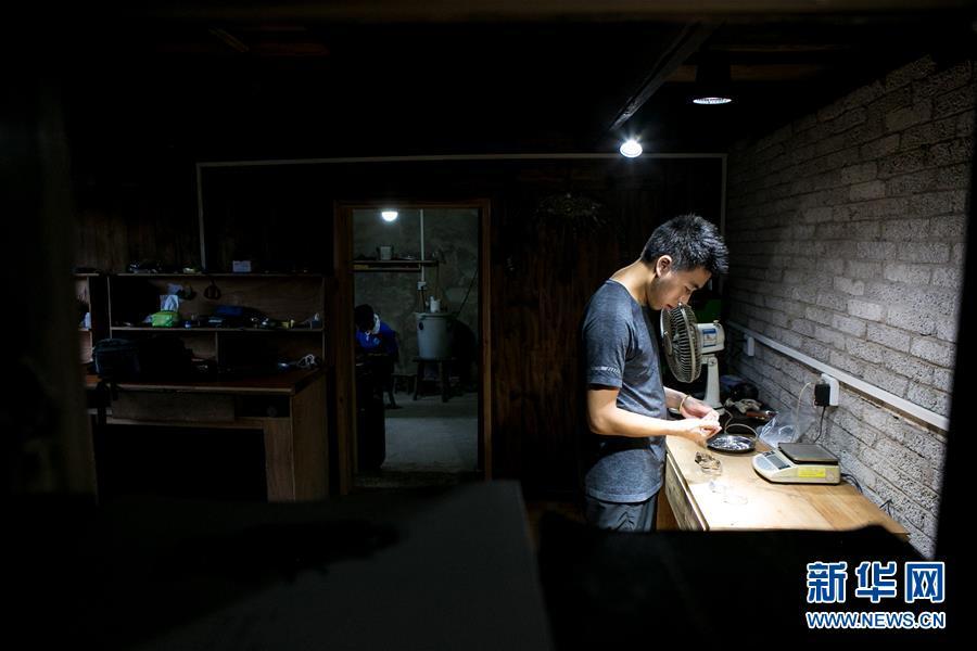 龍懂陽的弟弟龍?zhí)栆彩倾y飾工藝傳人。和哥哥不同,弟弟主打的是銀飾文化體驗游,用自家傳統(tǒng)苗寨開設(shè)民宿,游客在此居住的同時,還能學(xué)習(xí)體驗銀飾品制作。每年暑期一到,家長孩子絡(luò)繹不絕。新客源、新銷路、新模式帶動雷山縣銀飾業(yè)不斷發(fā)展壯大,成為脫貧攻堅的重要產(chǎn)業(yè)。2017年,雷山縣控拜、麻料、烏高三個村銀飾品及相關(guān)產(chǎn)業(yè)銷售額超過1.5億元,吸引很多外出打工的年輕人回家創(chuàng)業(yè)。苗寨鍛銀聲在綠水青山間響遍千戶,也漸漸走出大山,聲名遠(yuǎn)播。新華社記者 李芒茫 攝