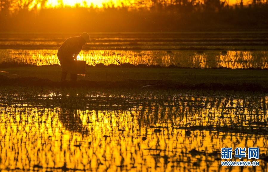 夕陽(yáng)西下,村民在新疆察布查爾錫伯自治縣種羊場(chǎng)托海依村的一處農(nóng)田里勞動(dòng)(5月21日攝)。近日,隨著氣溫漸高,地處新疆伊犁河谷的察布查爾錫伯自治縣迎來插秧高峰期,田間地頭一派繁忙景象。塊塊稻田水滿如鏡,田間防護(hù)林枝繁葉茂,遠(yuǎn)處雪山依稀可見,如一幅在大地上鋪展開的生態(tài)畫卷。新華社記者胡虎虎 攝