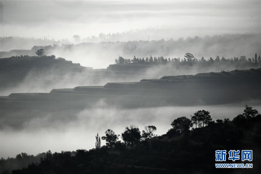 近日,寧夏固原市彭陽縣數(shù)十萬畝旱作梯田在曙光中迎來云海景觀,層疊的梯田間云霧繚繞,宛如仙境。據(jù)了解,彭陽縣自1983年建縣以來,始終堅持生態(tài)立縣的理念,積極推進(jìn)植樹造林事業(yè),全縣林木保存面積由1983年的27萬畝,增長到目前的203.87萬畝,森林覆蓋率達(dá)到27.5%。