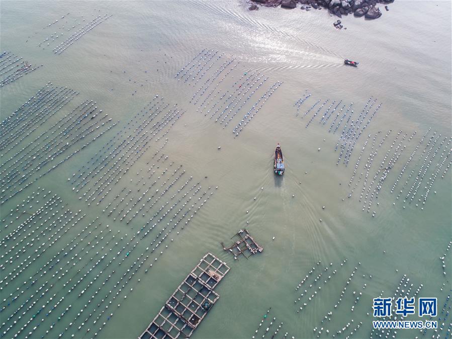 8月19日,空中俯瞰南麂島海域內(nèi)的“海上牧場(chǎng)”養(yǎng)殖區(qū)(無人機(jī)拍攝)。進(jìn)入8月,浙江省溫州市平陽縣南麂鎮(zhèn)海域上大片的大黃魚、貽貝等特色海產(chǎn)品養(yǎng)殖區(qū)域迎來豐收季節(jié),養(yǎng)殖戶們駕駛漁船在養(yǎng)殖區(qū)海域進(jìn)行打撈收獲,在碧海藍(lán)天下構(gòu)成了一幅“海上牧場(chǎng)”的美麗豐收景象。近年來,南麂鎮(zhèn)政府引導(dǎo)漁民養(yǎng)殖戶充分發(fā)揮“靠海吃?!钡馁Y源優(yōu)勢(shì),大力發(fā)展海洋養(yǎng)殖經(jīng)濟(jì)和海島旅游經(jīng)濟(jì),實(shí)現(xiàn)了南麂由“生態(tài)美”向“產(chǎn)業(yè)美”,“產(chǎn)業(yè)美”向“經(jīng)濟(jì)美”的轉(zhuǎn)變。同時(shí)該鎮(zhèn)堅(jiān)持以大黃魚、貽貝等為特色產(chǎn)業(yè)支撐,精準(zhǔn)發(fā)展高效海洋養(yǎng)殖業(yè),重點(diǎn)培養(yǎng)一批新型職業(yè)漁民,依靠專業(yè)技術(shù)支持,實(shí)現(xiàn)深海仿生養(yǎng)殖,讓好生態(tài)造就好品質(zhì),重點(diǎn)打造南麂養(yǎng)殖品牌,組建營(yíng)銷網(wǎng)絡(luò),拓展特色海產(chǎn)品市場(chǎng)。新華社記者 徐昱攝