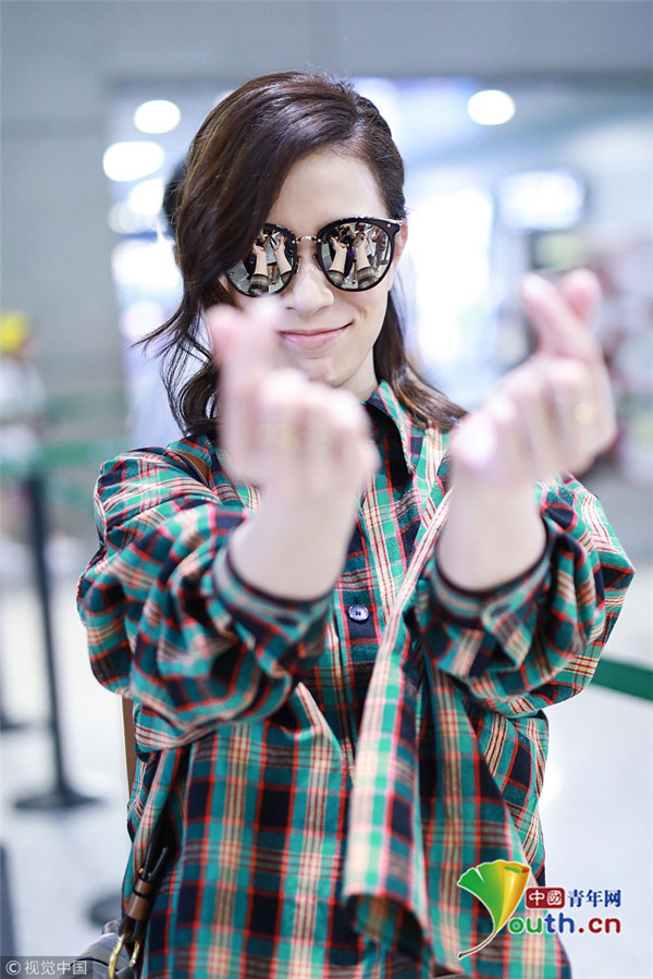 2018年9月9日,“嫻妃”佘詩曼從上海機(jī)場(chǎng)飛往北京機(jī)場(chǎng),她擺“剪刀腿”大方任拍,身穿格紋襯搭配衫燈籠褲,時(shí)髦青春衣品超贊!