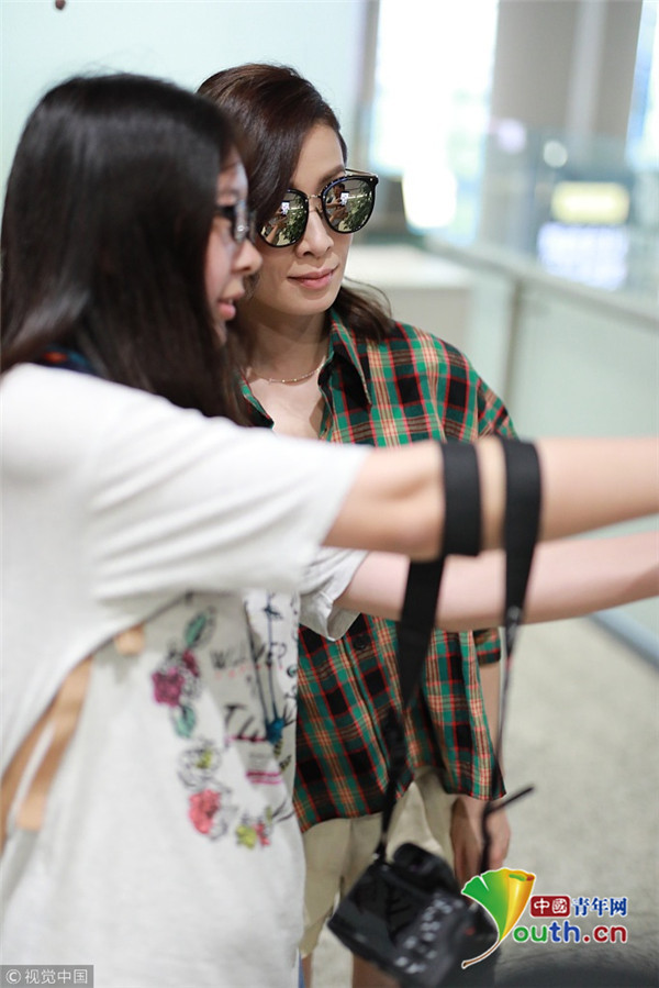 2018年9月9日,“嫻妃”佘詩(shī)曼從上海機(jī)場(chǎng)飛往北京機(jī)場(chǎng),她擺“剪刀腿”大方任拍,身穿格紋襯搭配衫燈籠褲,時(shí)髦青春衣品超贊!