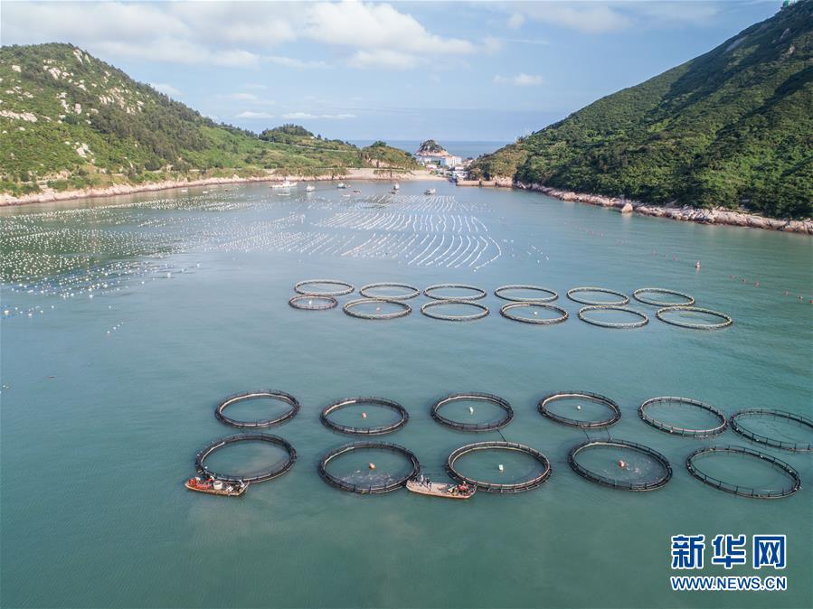 8月18日,南麂島馬祖岙海域的“海上牧場”養(yǎng)殖區(qū)(無人機拍攝)。南麂島位于浙江東南海域,水質(zhì)好,水溫、鹽度都適合大黃魚等養(yǎng)殖魚類的生長繁殖,因此當?shù)氐乃a(chǎn)品也一直保持了較高的品質(zhì)和口碑。進入8月,浙江省溫州市平陽縣南麂鎮(zhèn)海域上大片的大黃魚、貽貝等特色海產(chǎn)品養(yǎng)殖區(qū)域迎來豐收季節(jié),養(yǎng)殖戶們駕駛漁船在養(yǎng)殖區(qū)海域進行打撈收獲,在碧海藍天下構(gòu)成了一幅“海上牧場”的美麗豐收景象。近年來,南麂鎮(zhèn)政府引導漁民養(yǎng)殖戶充分發(fā)揮“靠海吃?!钡馁Y源優(yōu)勢,大力發(fā)展海洋養(yǎng)殖經(jīng)濟和海島旅游經(jīng)濟,實現(xiàn)了南麂由“生態(tài)美”向“產(chǎn)業(yè)美”,“產(chǎn)業(yè)美”向“經(jīng)濟美”的轉(zhuǎn)變。同時該鎮(zhèn)堅持以大黃魚、貽貝等為特色產(chǎn)業(yè)支撐,精準發(fā)展高效海洋養(yǎng)殖業(yè),重點培養(yǎng)一批新型職業(yè)漁民,依靠專業(yè)技術支持,實現(xiàn)深海仿生養(yǎng)殖,讓好生態(tài)造就好品質(zhì),重點打造南麂養(yǎng)殖品牌,組建營銷網(wǎng)絡,拓展特色海產(chǎn)品市場。新華社記者 徐昱攝