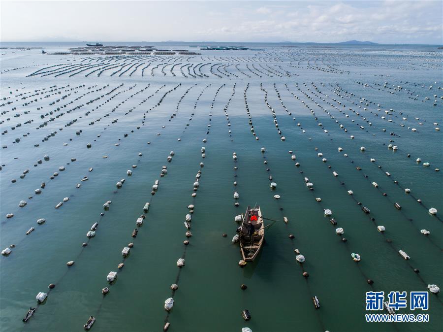 8月18日,南麂島馬祖岙海灣內(nèi),養(yǎng)殖戶乘船在貽貝養(yǎng)殖區(qū)內(nèi)作業(yè)(無人機拍攝)。進入8月,浙江省溫州市平陽縣南麂鎮(zhèn)海域上大片的大黃魚、貽貝等特色海產(chǎn)品養(yǎng)殖區(qū)域迎來豐收季節(jié),養(yǎng)殖戶們駕駛漁船在養(yǎng)殖區(qū)海域進行打撈收獲,在碧海藍天下構(gòu)成了一幅“海上牧場”的美麗豐收景象。近年來,南麂鎮(zhèn)政府引導漁民養(yǎng)殖戶充分發(fā)揮“靠海吃?!钡馁Y源優(yōu)勢,大力發(fā)展海洋養(yǎng)殖經(jīng)濟和海島旅游經(jīng)濟,實現(xiàn)了南麂由“生態(tài)美”向“產(chǎn)業(yè)美”,“產(chǎn)業(yè)美”向“經(jīng)濟美”的轉(zhuǎn)變。同時該鎮(zhèn)堅持以大黃魚、貽貝等為特色產(chǎn)業(yè)支撐,精準發(fā)展高效海洋養(yǎng)殖業(yè),重點培養(yǎng)一批新型職業(yè)漁民,依靠專業(yè)技術支持,實現(xiàn)深海仿生養(yǎng)殖,讓好生態(tài)造就好品質(zhì),重點打造南麂養(yǎng)殖品牌,組建營銷網(wǎng)絡,拓展特色海產(chǎn)品市場。新華社記者 徐昱攝