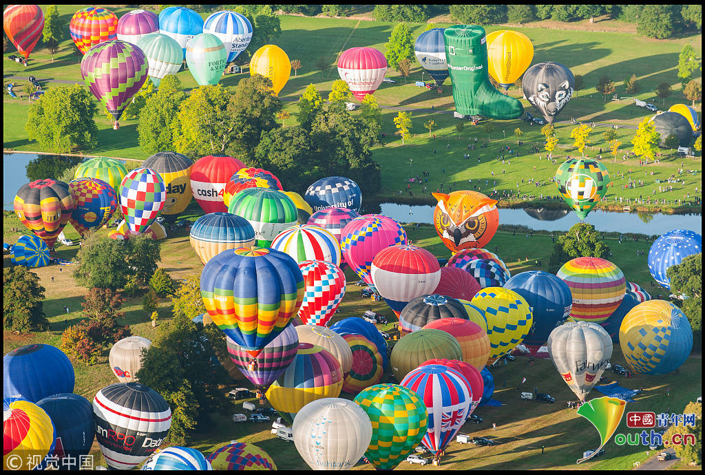 英國170多只熱氣球齊飛創(chuàng)紀錄 如田園夢幻世界