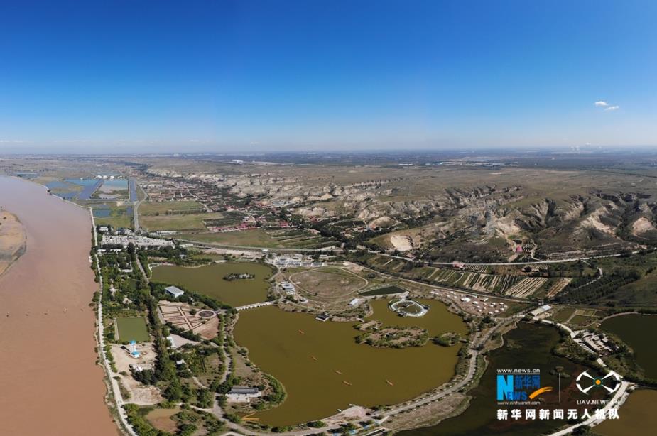 航拍黃河托克托段兩岸風光,東岸是魚米之鄉(xiāng)。新華網(wǎng) 張偉 攝