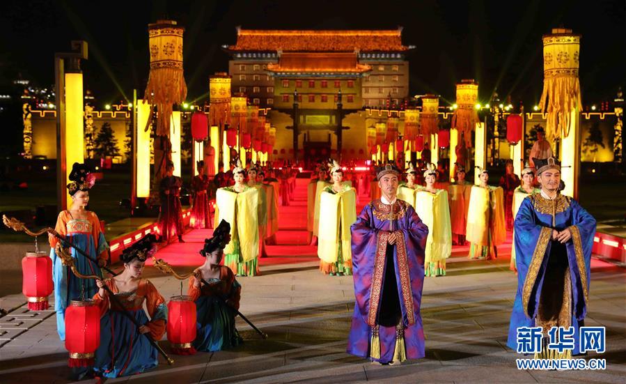 演員在表演《夢長安——大唐迎賓盛禮》(9月23日攝)。