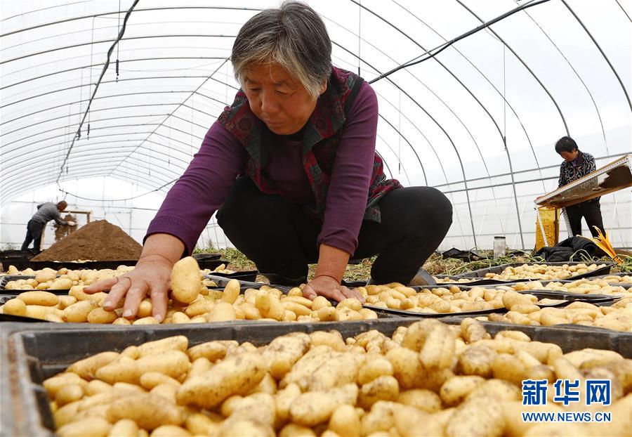9月23日,張北縣小二臺(tái)鎮(zhèn)一家馬鈴薯育種中心的工人在大棚內(nèi)分揀剛收獲的脫毒微型薯。 近年來(lái),地處壩上地區(qū)的河北省張北縣因地制宜,積極推進(jìn)馬鈴薯產(chǎn)業(yè)化發(fā)展,形成了馬鈴薯繁種育種、商品薯種植、倉(cāng)儲(chǔ)、加工為一體的產(chǎn)業(yè)鏈,帶動(dòng)農(nóng)民增收致富。 新華社記者楊世堯攝