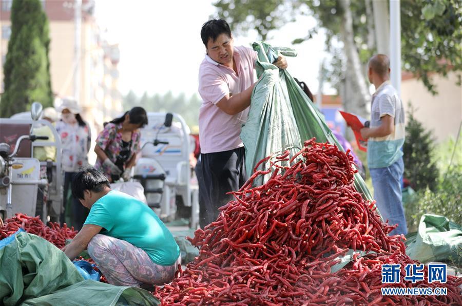 9月16日,阜城縣王集鄉(xiāng)南張莊村農(nóng)民在搬運(yùn)采摘的辣椒。近年來,河北省阜城縣王集鄉(xiāng)在推進(jìn)產(chǎn)業(yè)富民過程中,積極引導(dǎo)農(nóng)民調(diào)整農(nóng)業(yè)產(chǎn)業(yè)結(jié)構(gòu),按照品種特色化、種植規(guī)?;a(chǎn)銷一體化的“公司+基地+農(nóng)戶”的經(jīng)營(yíng)模式,鼓勵(lì)農(nóng)民發(fā)展特色辣椒種植,推行“訂單種植”模式,開辟出了一條農(nóng)民創(chuàng)收新路徑。目前,阜城縣王集鄉(xiāng)辣椒種植面積3100余畝,每畝年收益2500元以上,帶動(dòng)當(dāng)?shù)剞r(nóng)民實(shí)現(xiàn)增收。新華社記者朱旭東攝