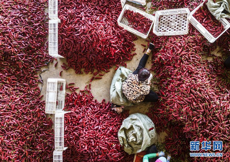 9月16日,阜城縣王集鄉(xiāng)南張莊村農(nóng)民在整理收獲的辣椒。近年來,河北省阜城縣王集鄉(xiāng)在推進(jìn)產(chǎn)業(yè)富民過程中,積極引導(dǎo)農(nóng)民調(diào)整農(nóng)業(yè)產(chǎn)業(yè)結(jié)構(gòu),按照品種特色化、種植規(guī)?;a(chǎn)銷一體化的“公司+基地+農(nóng)戶”的經(jīng)營(yíng)模式,鼓勵(lì)農(nóng)民發(fā)展特色辣椒種植,推行“訂單種植”模式,開辟出了一條農(nóng)民創(chuàng)收新路徑。目前,阜城縣王集鄉(xiāng)辣椒種植面積3100余畝,每畝年收益2500元以上,帶動(dòng)當(dāng)?shù)剞r(nóng)民實(shí)現(xiàn)增收。新華社記者朱旭東攝