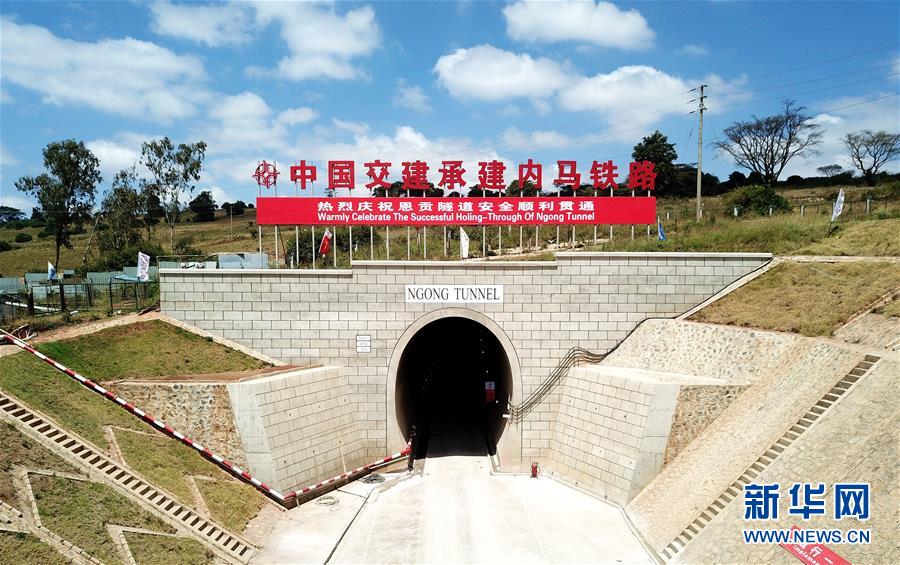 這是9月24日拍攝的內羅畢-馬拉巴標軌鐵路(內馬鐵路)項目第一期恩貢隧道入口(航拍照片)。 由中國交通建設股份有限公司承建的內羅畢-馬拉巴標軌鐵路(內馬鐵路)項目第一期恩貢隧道24日實現(xiàn)貫通。據(jù)悉,恩貢隧道全長約4.5公里,是目前東非地區(qū)最長的鐵路隧道。它的建成標志著內馬鐵路項目第一期取得了突破性進展。 新華社記者王騰攝
