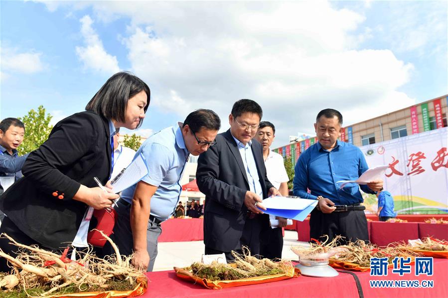 9月26日,在威海市文登區(qū)張家產(chǎn)鎮(zhèn),評委們在評判西洋參。新華社記者 郭緒雷 攝