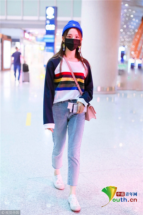 2018年9月25日,北京,“錦鯉少女”楊超越現(xiàn)身機(jī)場(chǎng),她身穿“彩虹裝”青春無(wú)敵,戴著糖果色耳環(huán),細(xì)節(jié)處可愛(ài)吸睛。
