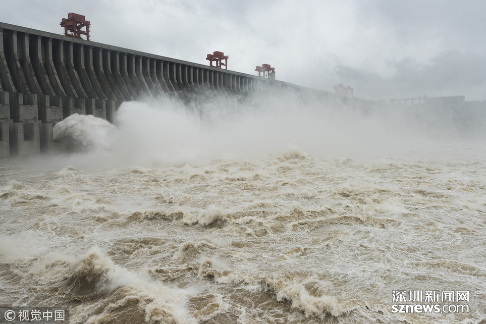深圳新聞網(wǎng)訊 2018年7月5日,三峽大壩今年首次開閘泄洪。當(dāng)天,三峽大壩開啟5個泄洪孔下泄洪水,至中午12點(diǎn)左右減至2個。