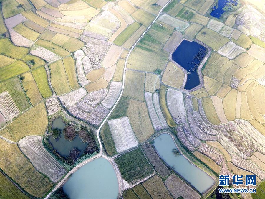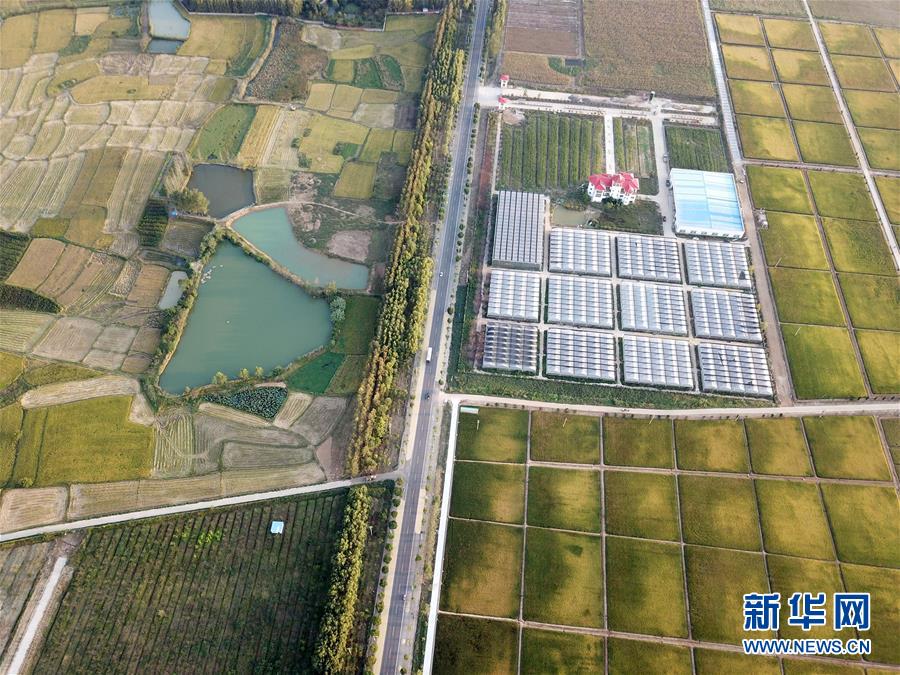這是小崗村的稻田(9月26日無人機拍攝)。  新華社記者 劉軍喜攝