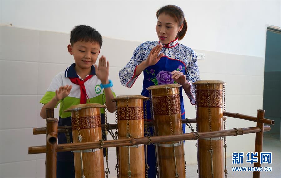 10月8日,崇義縣竹樂(lè)樂(lè)團(tuán)的演員在教學(xué)生演奏竹鼓。 近年來(lái),江西省崇義縣思源實(shí)驗(yàn)學(xué)校定期開(kāi)設(shè)竹樂(lè)課,邀請(qǐng)崇義縣竹樂(lè)樂(lè)團(tuán)的演員教授學(xué)生演奏竹排琴、竹板琴等竹樂(lè)樂(lè)器,激發(fā)學(xué)生了解傳統(tǒng)文化的熱情。 新華社記者胡晨歡攝