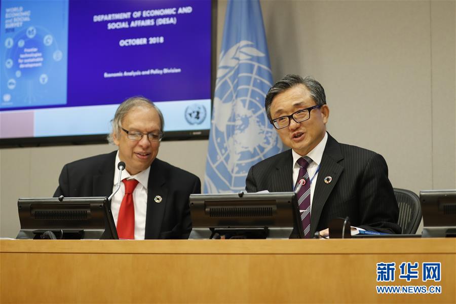 10月8日,在位于紐約的聯合國總部,聯合國負責經濟和社會事務的副秘書長劉振民向記者介紹《2018年世界經濟和社會概覽》。新華社記者李木子攝